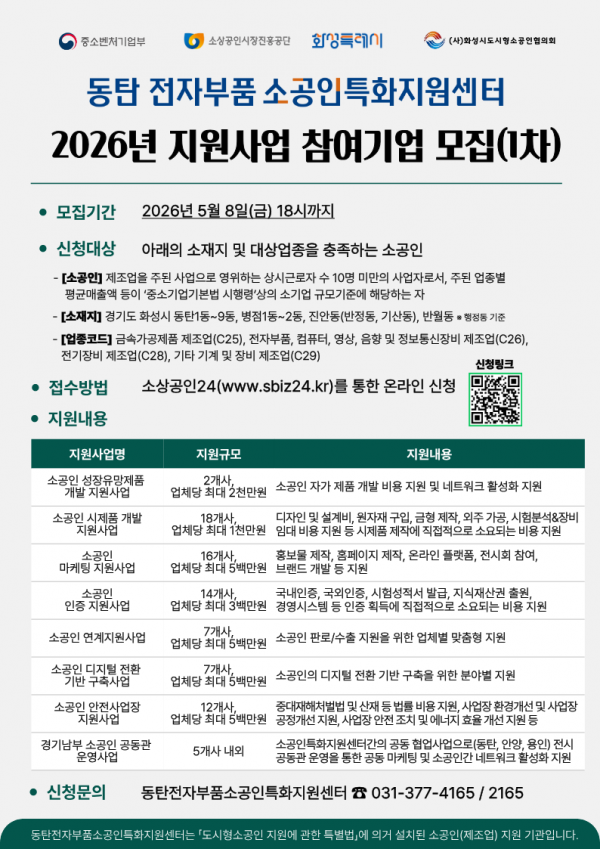 [2026년 동탄전자부품소공인특화지원센터 지원사업 참여 기업 모집(1차)]