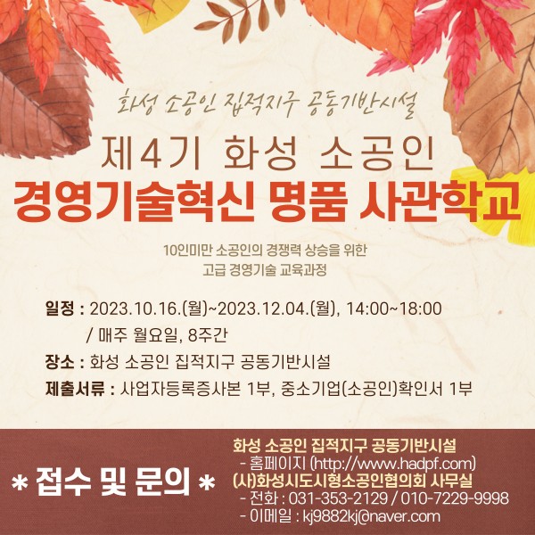 | 과정명 | 제4기 화성시 소공인 경영기술혁신 명품 사관학교 | ||